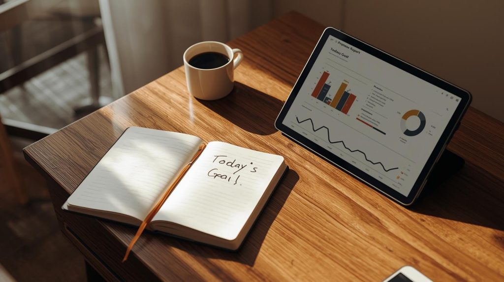 گام عملی ترکیبی: دفترچهی کاغذی شما به یک سکوی پرتاب و گزارش روزانه تبدیل میشود. هر صبح ۵ دقیقه برنامهی دیجیتال خود را مرور کرده و قصد اصلی روز را بنویسید. همزمان، سیستم دیجیتال شما اتوماسیون را مدیریت میکند: مرور فلشکارتها را از طریق تکرار با فاصله زمانبندی میکند، یادآور مطالعه را فعال میکند و معیارهای عملکرد شما را ردیابی میکند.